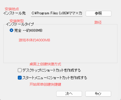 第一个选项是启动游戏,默认是灰色的,一般选择第二个选项进行路径选择安装游戏(全英文路径)